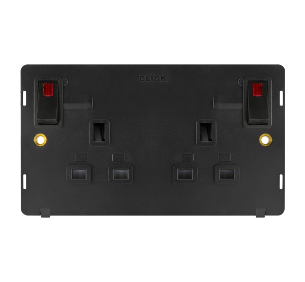 Click Definity 2G 13A Dp Switch Socket Insert W/Neon Bk