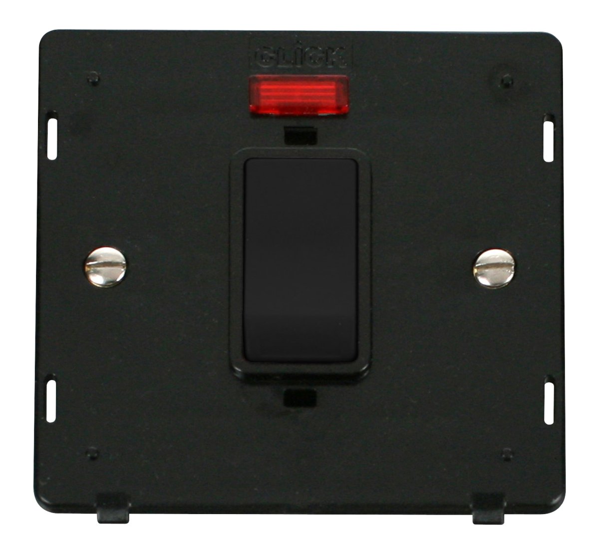 Click Definity 50A 1 Gang Double Pole Plate Switch With Neon Insert Black Insert & Rocker