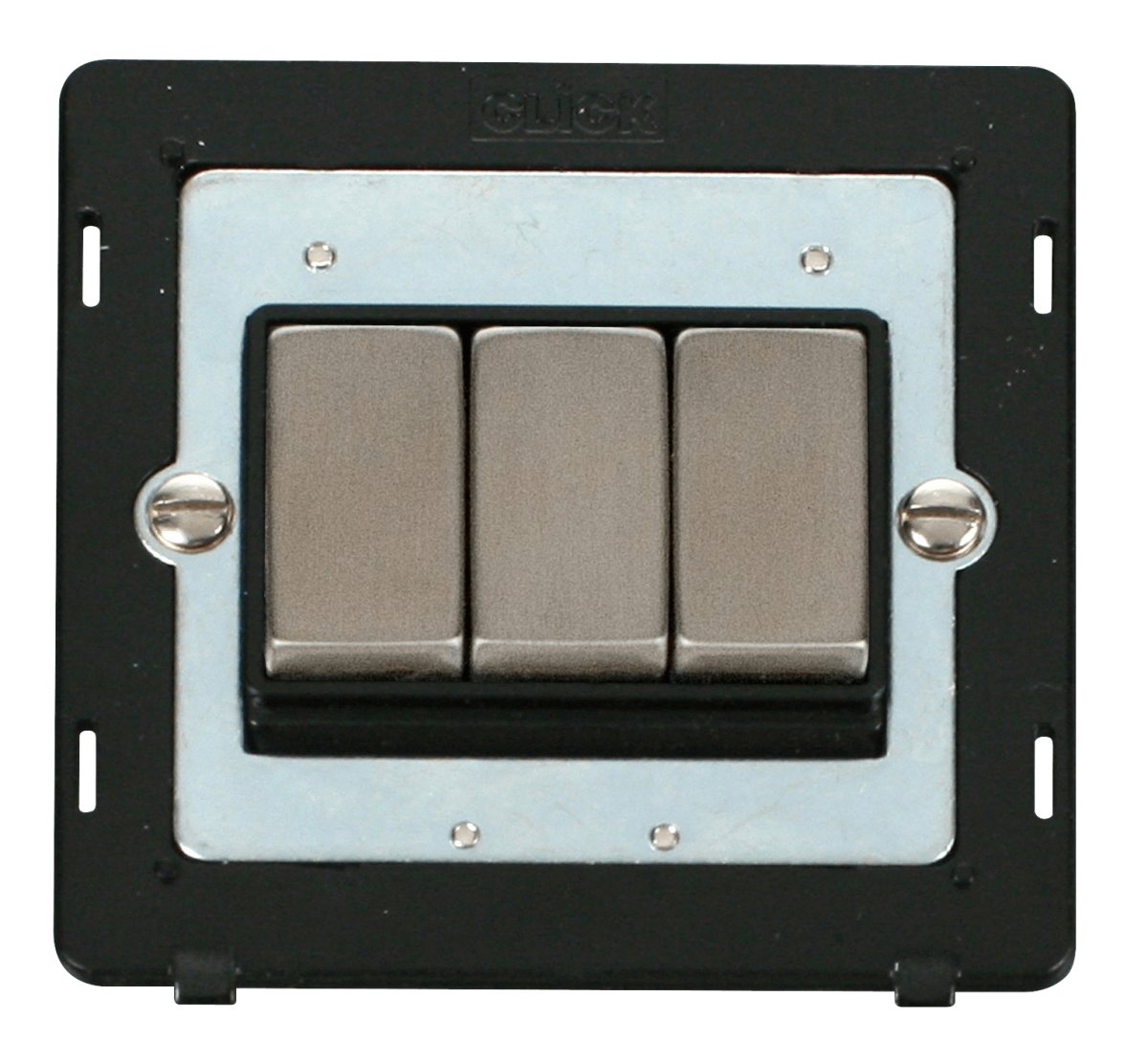 Click Definity Ingot 10Ax 3 Gang 2 Way Switch Insert Black / Stainless Steel