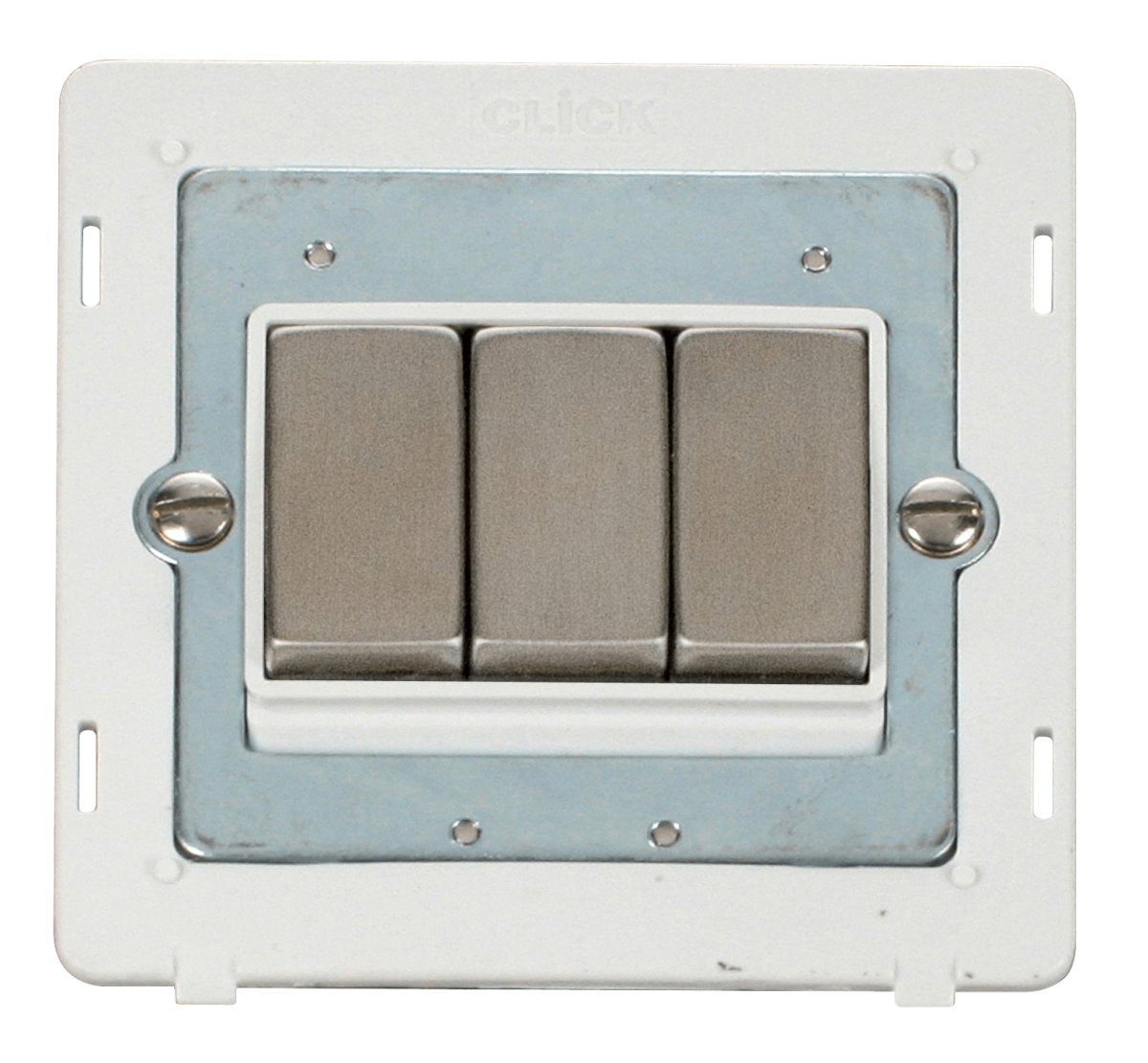 Click Definity Ingot 10Ax 3 Gang 2 Way Switch Insert White / Stainless Steel