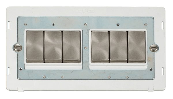 Click Definity Ingot 10Ax 6 Gang 2 Way Switch Insert White / Brushed Stainless