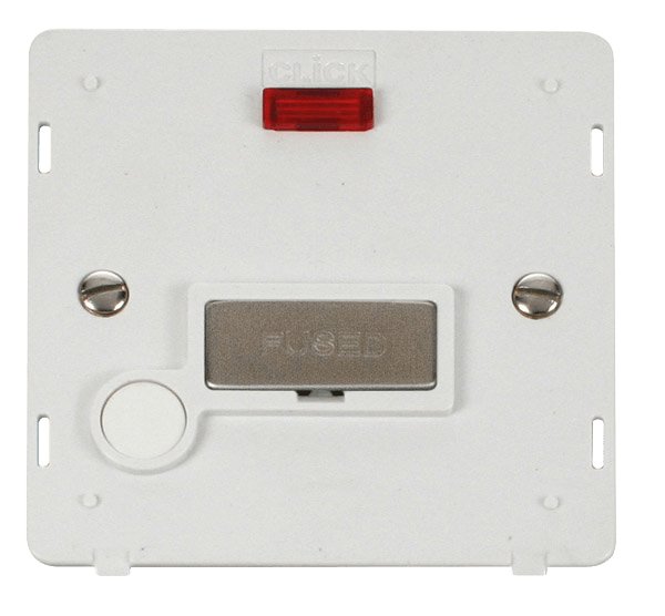 Click Definity Ingot 13A Fused Conn. Unit With F/O Insert & Neon White / St. Steel