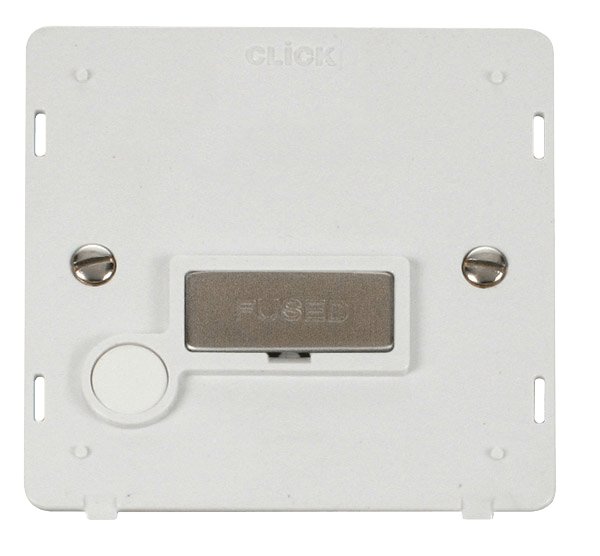Click Definity Ingot 13A Fused Conn. Unit With Flex Outlet Insert White / St. Steel