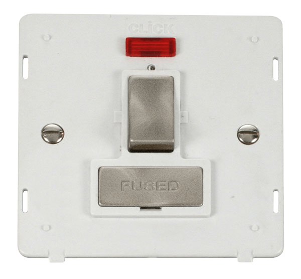 Click Definity Ingot 13A Fused Sw. Conn. Unit Insert & Neon White / Br. Stainless