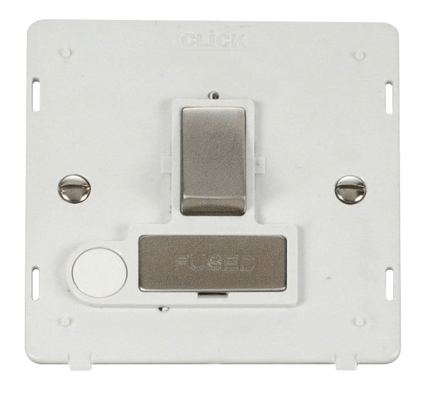 Click Definity Ingot 13A Fused Sw. Conn. Unit With Flex Outlet Insert White / St. Steel
