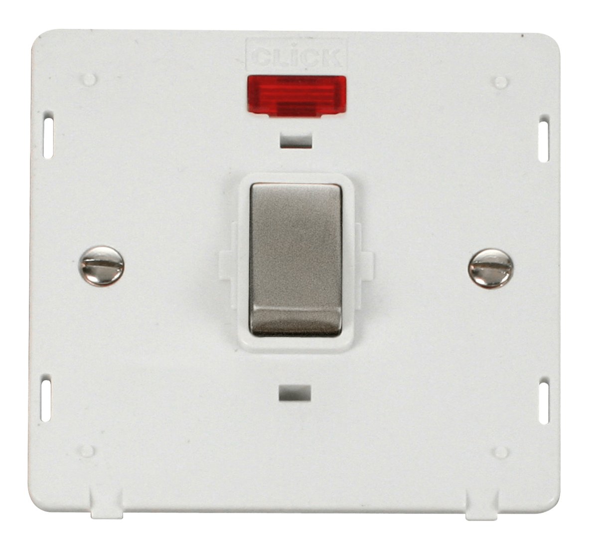 Click Definity Ingot 20A 1 Gang Dp Switch With Neon Insert White / Stainless Steel