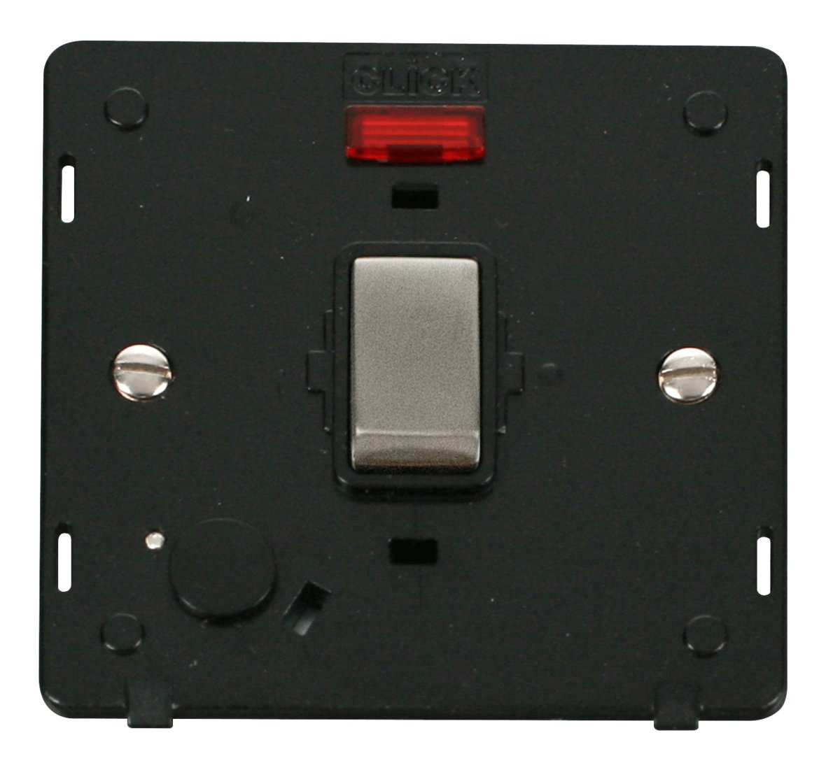 Click Definity Ingot 20A Dp Switch With Flex Outlet & Neon Insert Black / St. Steel
