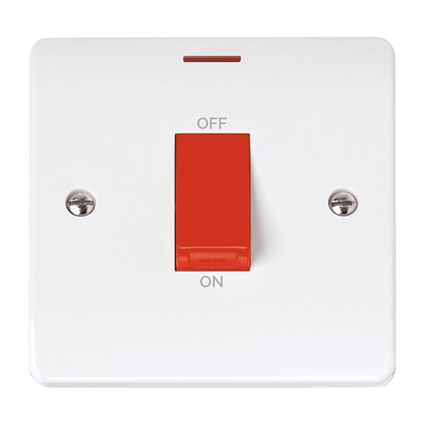Click Mode 50A 1 Gang Double Pole Switch With Red Rocker & Led