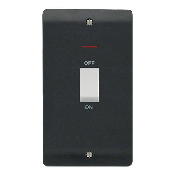 Click Mode 50A 2 Gang Double Pole Switch With White Rocker & Led (Vertical Plate) Part M