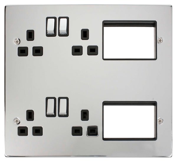 Click New Media 4 X 13A Dp Switched Sockets, (2X3) New Media Module Apertures