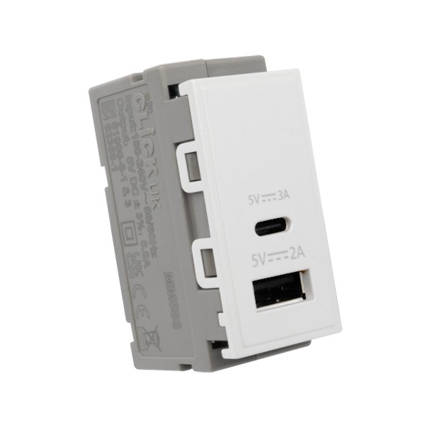 Click New Media Dual Usb Module 2A Type A 3A Type C Wh