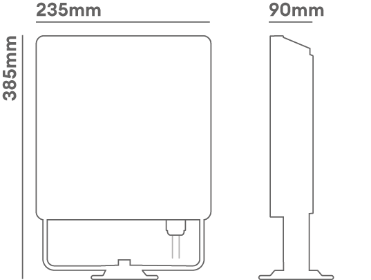 • H: 385 L: 90 W: 235 (mm)