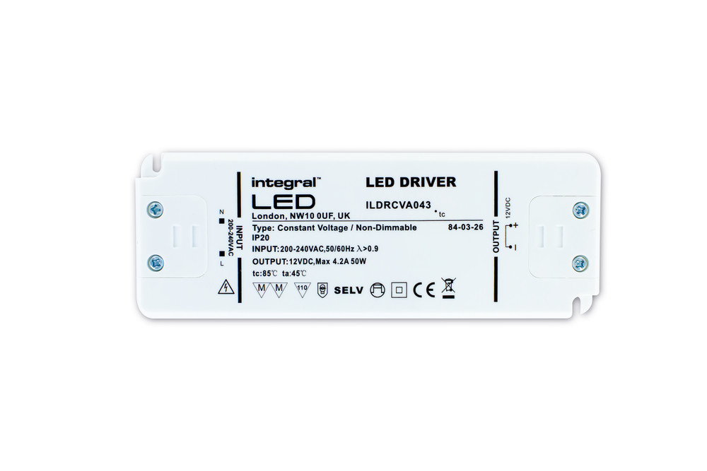 Integral Constant Voltage Driver 50W 12Vdc IP20 Non-Dimm 200-240V Input