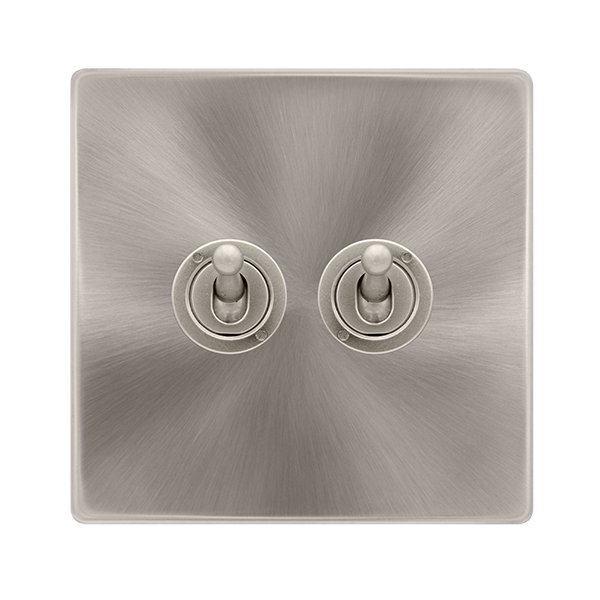 Click Definity Complete 10Ax 2 Gang 2 Way Toggle Switch Brushed Steel