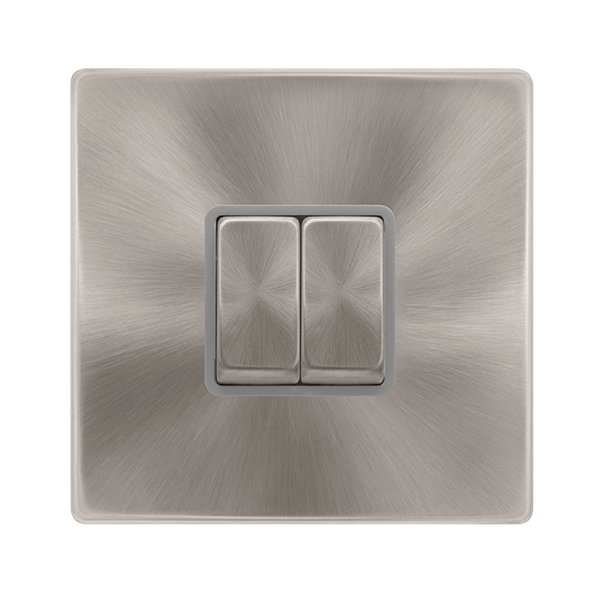 Click Definity Complete 10Ax Ingot 2 Gang 2 Way Switch Brushed Steel Cover Plate Grey Insert