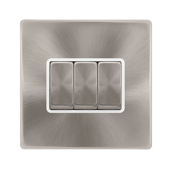 Click Definity Complete 10Ax Ingot 3 Gang 2 Way Switch Brushed Steel Cover Plate Polar Insert