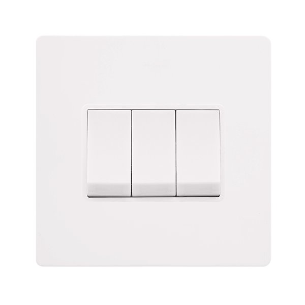 Click Definity Complete 10Ax Ingot 3 Gang 2 Way Switch Metal White Cover Plate Polar White Insert