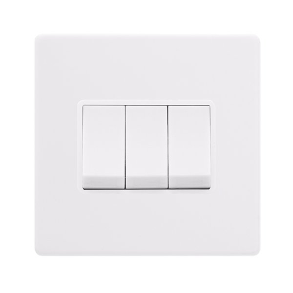 Click Definity Complete 10Ax Ingot 3 Gang 2 Way Switch Polar White Cover Plate Polar White Insert