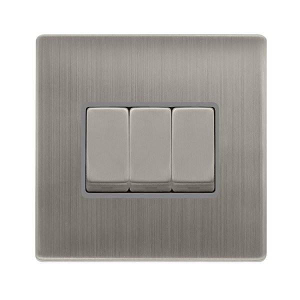 Click Definity Complete 10Ax Ingot 3 Gang 2 Way Switch Stainless Steel Cover Plate Grey Insert