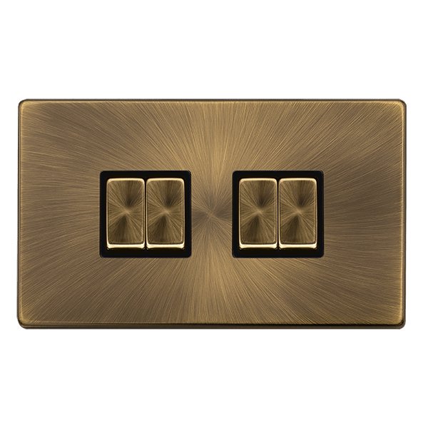 Click Definity Complete 10Ax Ingot 4 Gang 2 Way Switch Antique Brass Cover Plate Black Insert