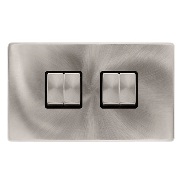 Click Definity Complete 10Ax Ingot 4 Gang 2 Way Switch Brushed Steel Cover Plate Black Insert
