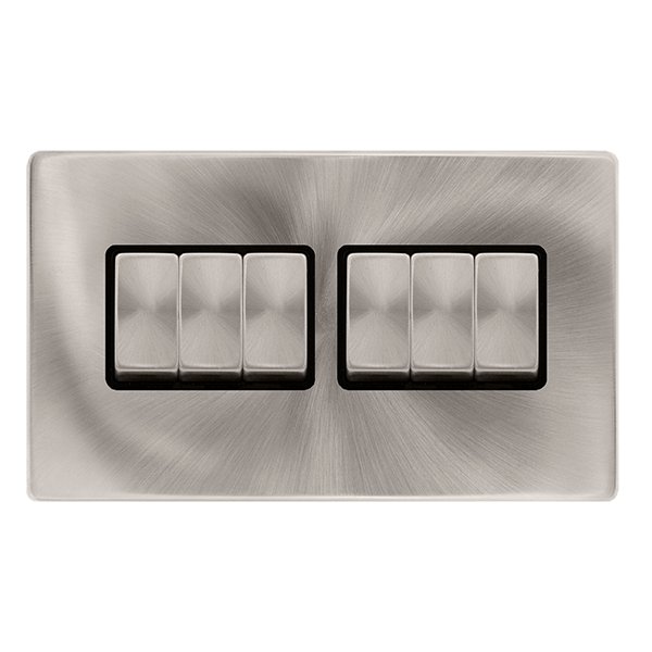 Click Definity Complete 10Ax Ingot 6 Gang 2 Way Switch Brushed Steel Cover Plate Black Insert