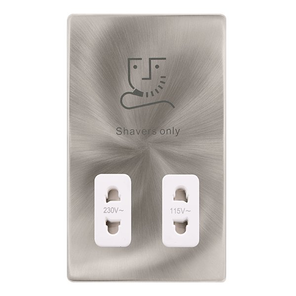 Click Definity Complete 115/230V Dual Voltage Shaver Socket Brushed Steel Cover Plate Polar White Insert
