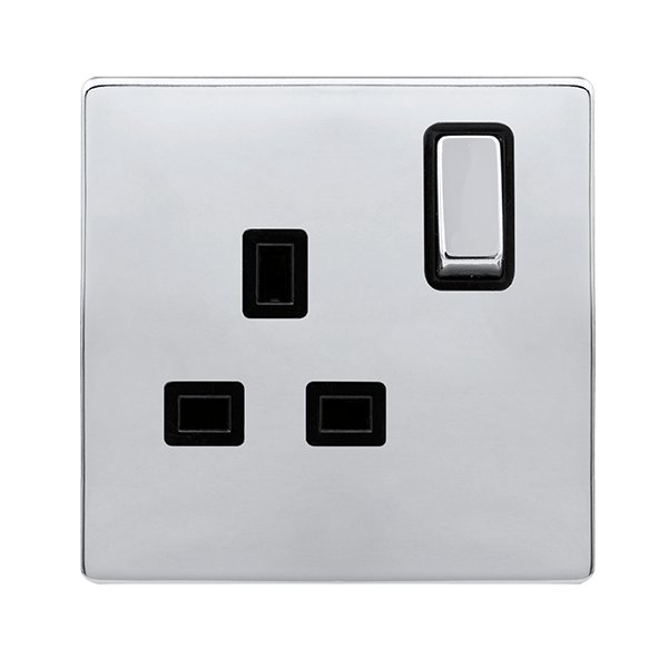 Click Definity Complete 13A Ingot 1 Gang Dp Switched Socket Polished Chrome Cover Plate Black Insert