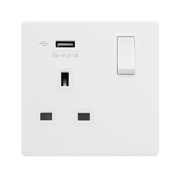 Click Definity Complete 13A Ingot 1 Gang Switched Socket With 2.1A Usb Outlet Polar White Cover Plate Polar White Insert