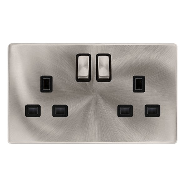 Click Definity Complete 13A Ingot 2 Gang Dp Switched Socket Brushed Steel Cover Plate Black Insert