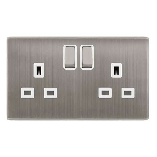 Click Definity Complete 13A Ingot 2 Gang Dp Switched Socket Stainless Steel Cover Plate Polar White Insert