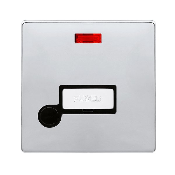Click Definity Complete 13A Ingot Fused Connection Unit With Neon & Optional Flex Outlet Polished Chrome Cover Plate Black Insert