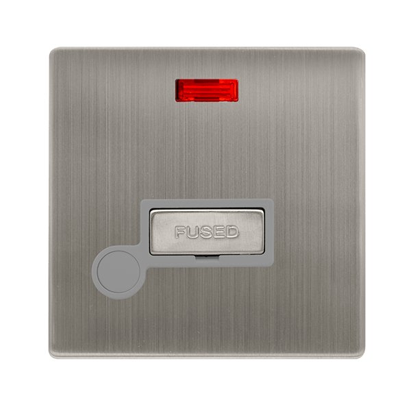 Click Definity Complete 13A Ingot Fused Connection Unit With Neon & Optional Flex Outlet Stainless Steel Cover Plate Grey Insert