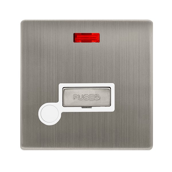 Click Definity Complete 13A Ingot Fused Connection Unit With Neon & Optional Flex Outlet Stainless Steel Cover Plate Polar White Insert