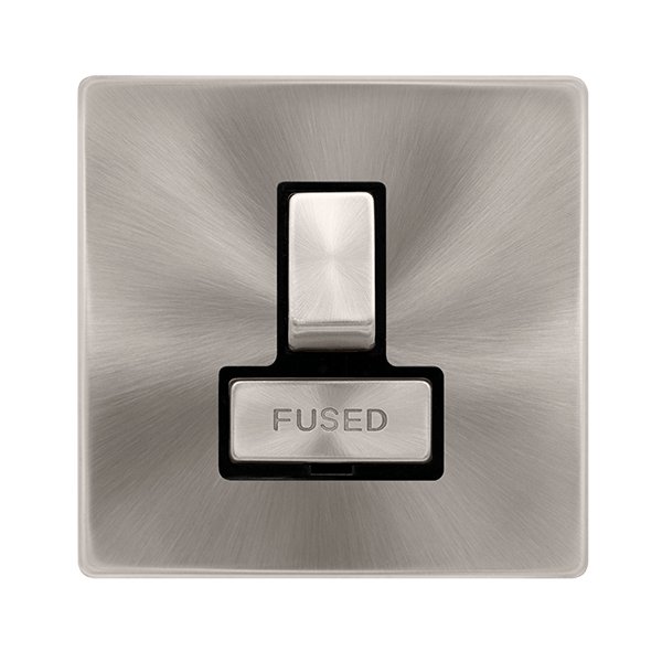 Click Definity Complete 13A Ingot Switched Fused Connection Unit Brushed Steel Cover Plate Black Insert