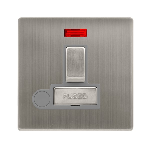 Click Definity Complete 13A Ingot Switched Fused Connection Unit With Neon & Optional Flex Outlet Stainless Steel Cover Plate Grey Insert