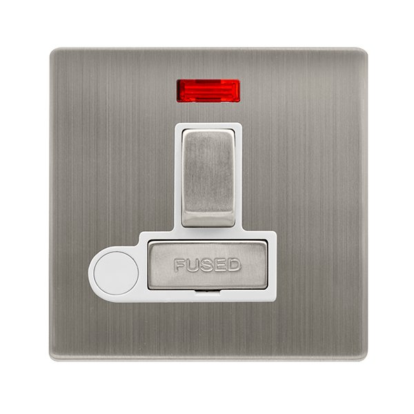 Click Definity Complete 13A Ingot Switched Fused Connection Unit With Neon & Optional Flex Outlet Stainless Steel Cover Plate Polar White Insert