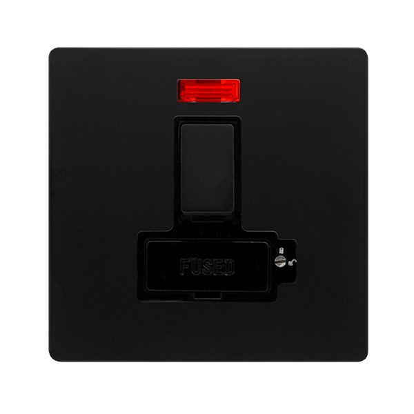 Click Definity Complete 13A Lockable Switched Fused Connection Unit With Neon Matt Black Cover Plate Black Insert