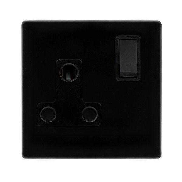 Click Definity Complete 15A Round Pin Switched Socket Metal Black Cover Plate Black Insert