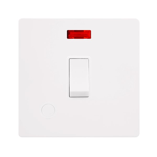 Click Definity Complete 20A Double Pole Switch With Neon & Flex Outlet Metal White Cover Plate Polar White Insert