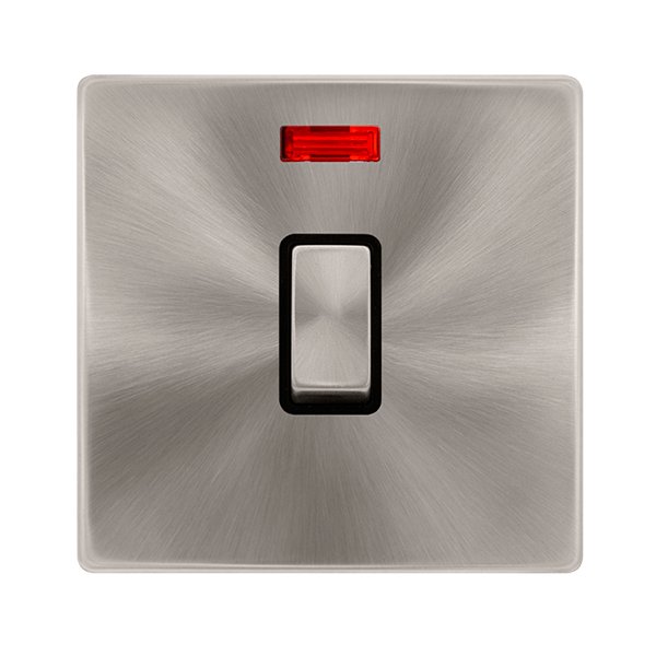 Click Definity Complete 20A Ingot Double Pole Switch With Neon Brushed Steel Cover Plate Black Insert