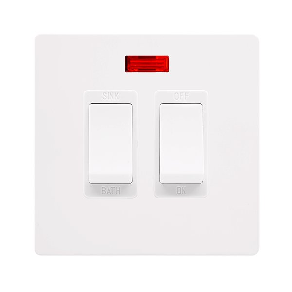 Click Definity Complete 20A Sink / Bath Switch With Neon Metal White Cover Plate Polar White Insert