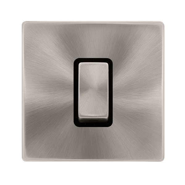 Click Definity Complete 50A Ingot 1 Gang Double Pole Switch Brushed Steel Cover Plate Black Insert