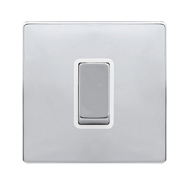 Click Definity Complete 50A Ingot 1 Gang Double Pole Switch Polished Chrome Cover Plate Polar White Insert