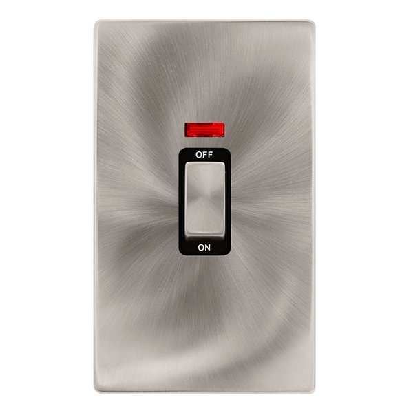 Click Definity Complete 50A Ingot 2 Gang Double Pole Switch With Neon Brushed Steel Cover Plate Black Insert