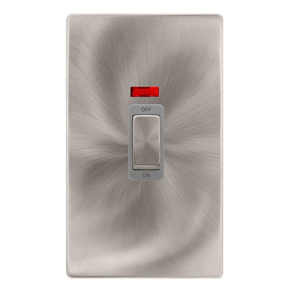 Click Definity Complete 50A Ingot 2 Gang Double Pole Switch With Neon Brushed Steel Cover Plate Grey Insert