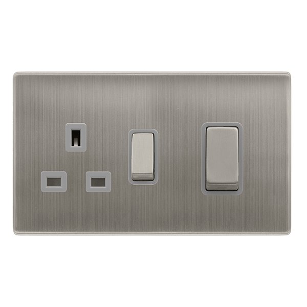 Click Definity Complete 50A Ingot Double Pole Switch With 13A Double Pole Switched Socket Stainless Steel Cover Plate Grey Insert