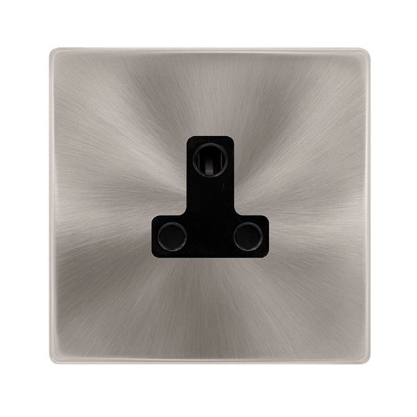 Click Definity Complete 5A Round Pin Socket Brushed Steel Cover Plate Black Insert