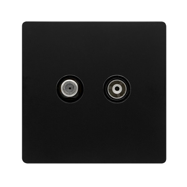 Click Definity Complete Isolated Satellite & Isolated Coaxial Outlet Matt Black Cover Plate Black Insert