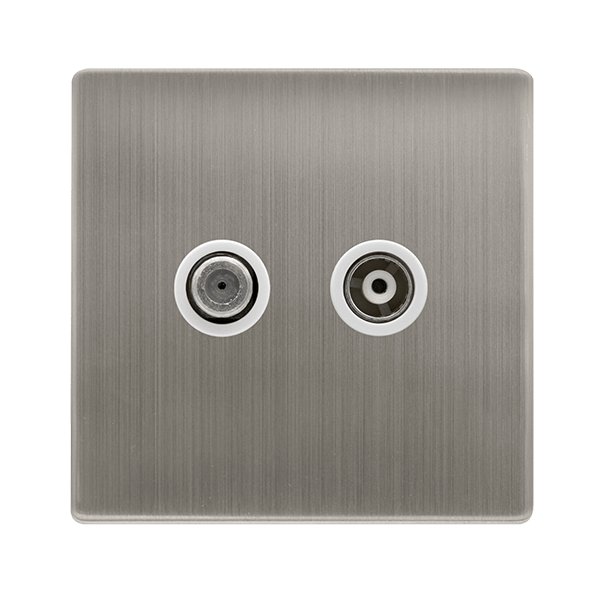 Click Definity Complete Non-Isolated Satellite & Non-Isolated Coaxial Outlet- Stainless Steel Cover Plate Polar White Insert